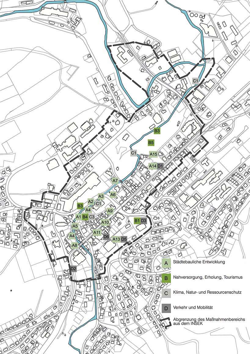 Im Rahmen eines intensiven Beteiligungsprozesses wurden 16 Maßnahmen erarbeitet, darunter die Umwandlung zentraler Straßen wie der Marktstraße, Mittelstraße und Kölner Straße in Fußgängerzonen sowie die Schaffung von „Pocket-Parks“ auf ehemaligen Parkflächen. Ein sechswöchiger Modellversuch im Sommer 2023 diente als Reallabor, um die Auswirkungen der veränderten Verkehrsführung zu testen. Begleitet wurde dieser von einem Mobilbüro und umfassenden Bürgerbefragungen, deren Ergebnisse maßgeblich in das finale Verkehrskonzept einflossen.