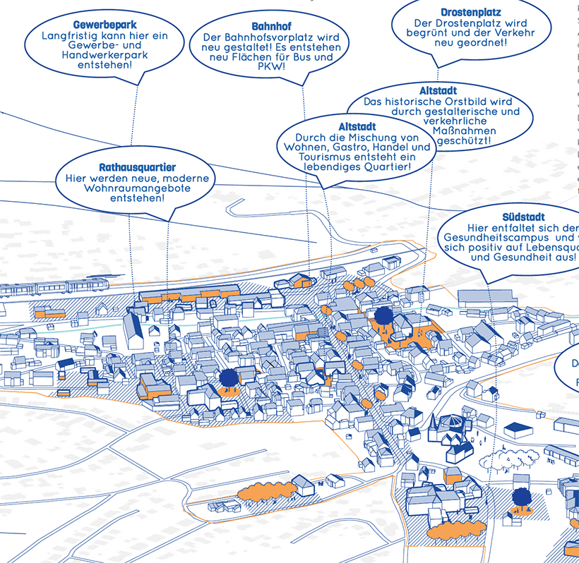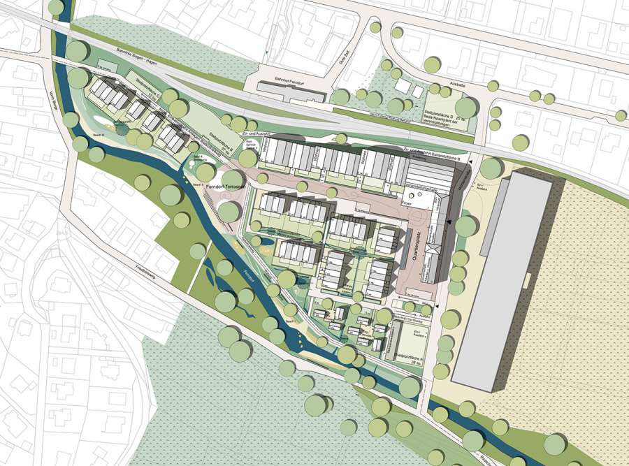 Das Projekt wurde im Mai 2024 vom Stadtrat beschlossen und erhielt im Januar 2025 den dritten Stern der REGIONALE 2025, was seine Umsetzungsreife bestätigt. Die Umsetzung der Maßnahmen ist ab 2027 geplant. Wir haben die Planung, das Fördermanagement, die Bürgerbeteiligung übernommen und begleiten die Umsetzung des Projekts weiterhin.