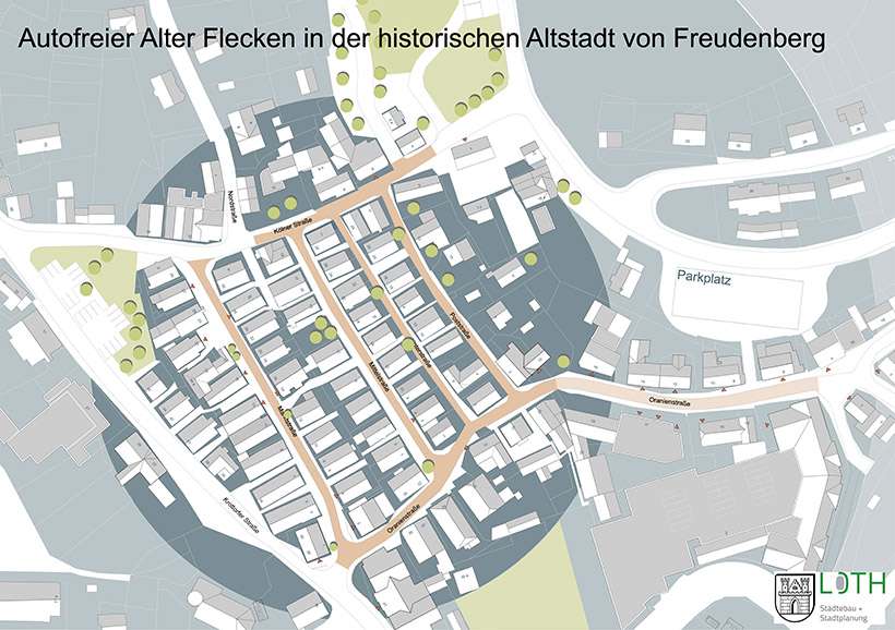 Das Büro Loth Städtebau und Stadtplanung hat gemeinsam mit der Stadt Freudenberg das zukunftsweisende Projekt „Autofreier Alter Flecken“ entwickelt und umgesetzt. Ziel ist es, die historische Altstadt lebenswerter zu gestalten, den Durchgangsverkehr zu reduzieren und den öffentlichen Raum für die Menschen zurückzugewinnen.